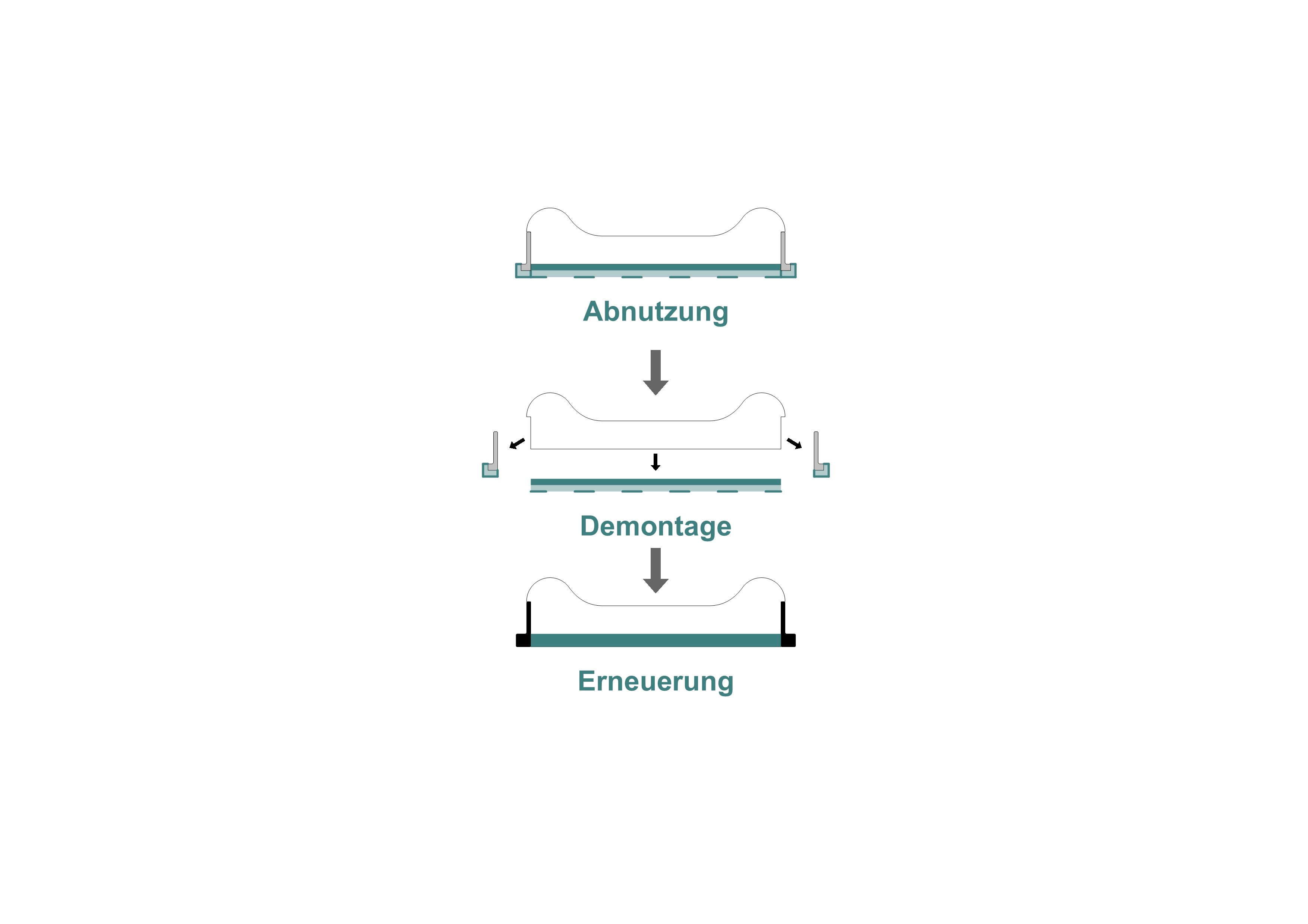 Fibre layer, made from glass or carbon fibres - Rubber bands, above the steel edges to protect against impacts